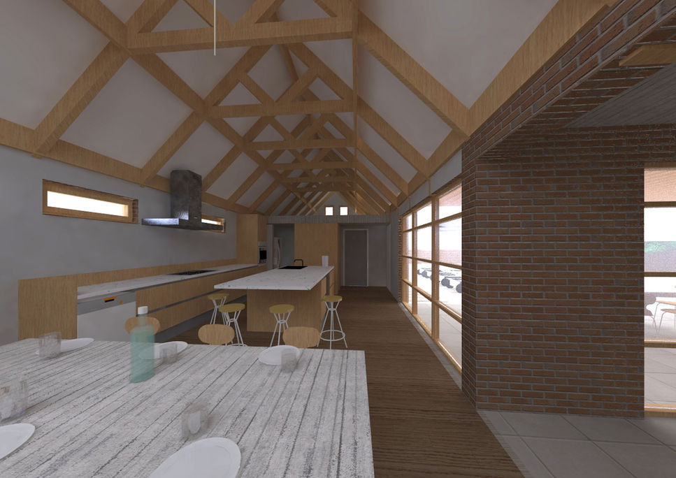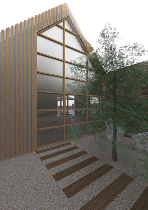 Faisabilité et Esquisse d’une maison individuelle neuve de 170m². Séparation de la maison en deux parties: Espace de vie parents et espace de vie enfants regroupés autour d'une terrasse et de patio.